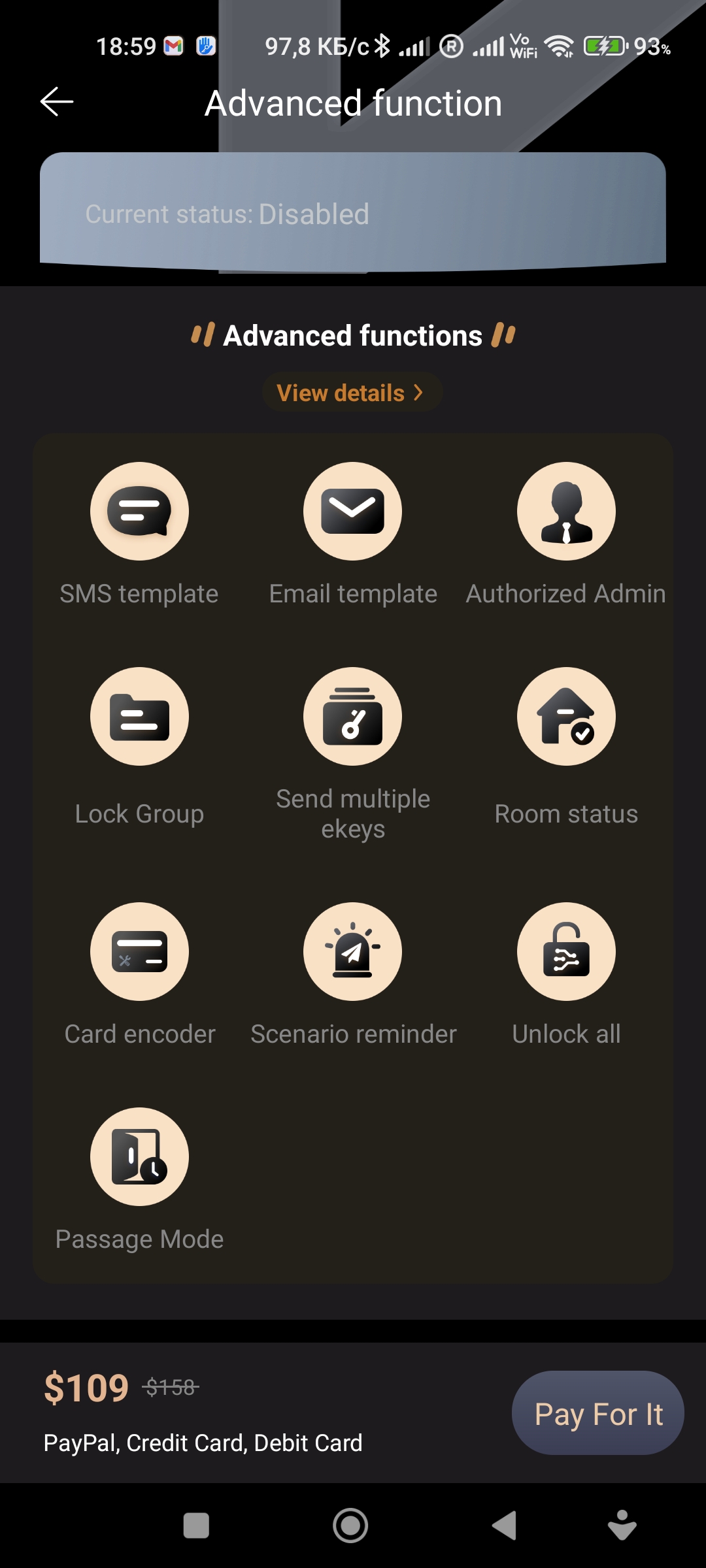 Informationen zu zusätzlichen kostenpflichtigen Diensten der TTLock-App: