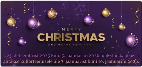 (!) Kaubad, mille eest on tasutud 22.12.2023 kuni 3.01.2024, saadetakse klientidele kolme tööpäeva jooksul alates 04.01.2024.